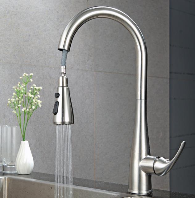 TB2009 - 304 stainless steel pull-out kitchen faucet for hot and cold household & hotel project